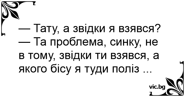 — Та проблема, синку, не в тому, звідки ти взявся, а якого бісу я туди поліз ...