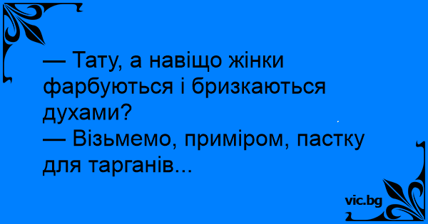 — Тату, а навіщо жінки фарбуються і бризкаються духами?