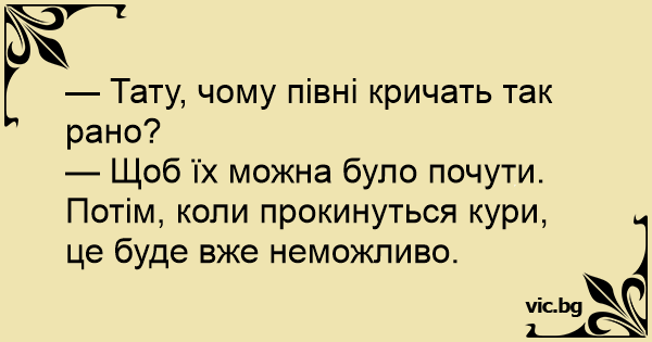 — Щоб їх можна було почути. Потім, коли прокинуться кури, це буде вже неможливо.
