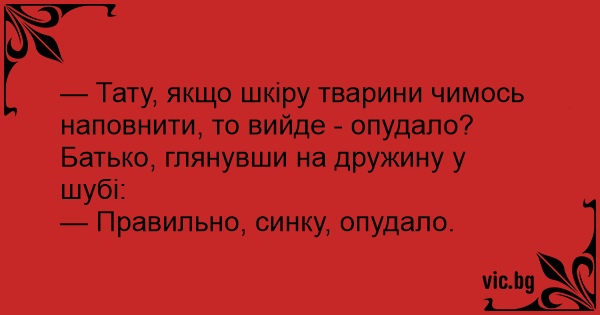 — Тату, якщо шкіру тварини чимось наповнити, то вийде - опудало?