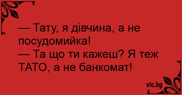 — Та що ти кажеш? Я теж ТАТО, а не банкомат!