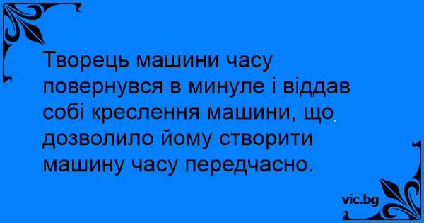 Творець машини часу повернувся в минуле і віддав собі креслення машини, що дозволило йому створити машину часу передчасно.
