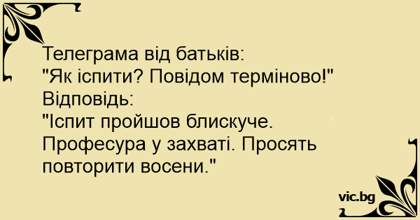 "Іспит пройшов блискуче. Професура у захваті. Просять повторити восени."