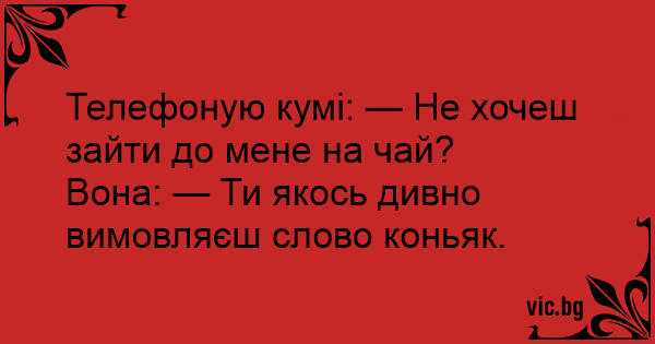 Телефоную кумі: — Не хочеш зайти до мене на чай?