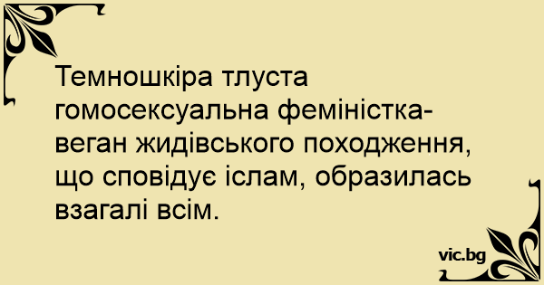 Темношкіра тлуста гомосексуальна феміністка-beгaн жидівського походження, що сповідує іслам, образилась взагалі всім.