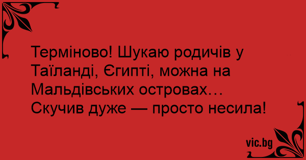 Терміново! Шукаю родичів у Таїланді, Єгипті, можна на Мальдівських островах… Скучив дуже — просто несила!