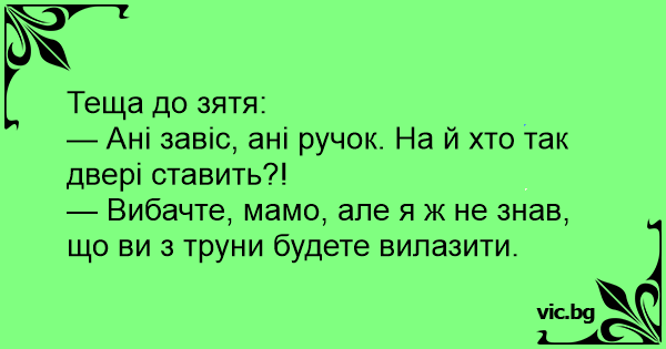 — Вибачте, мамо, але я ж не знав, що ви з труни будете вилазити.