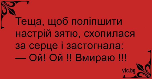 Теща, щоб поліпшити настрій зятю, схопилася за серце і застогнала: