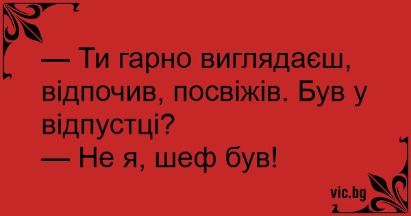 — Ти гарно виглядаєш, відпочив, посвіжів. Був у відпустці?