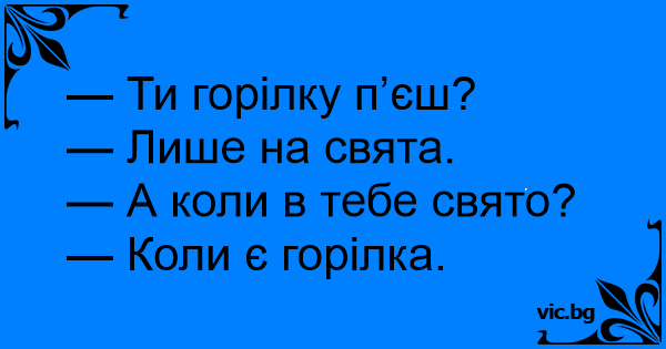 — Ти горілку п’єш? — Лише...