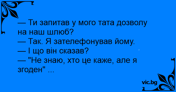 — Ти запитав у мого тата...