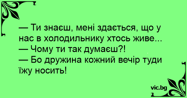 — Ти знаєш, мені здається, що у нас в холодильнику хтось живе...