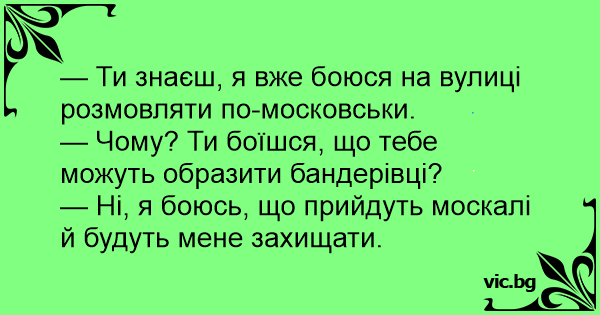 — Ти знаєш, я вже боюся на вулиці розмовляти по-московськи.
