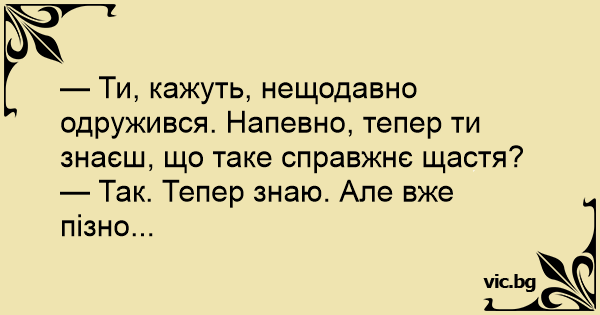 — Так. Тепер знаю. Але вже пізно...