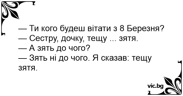 — Ти кого будеш вітати з 8 Березня?