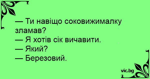 — Ти навіщо соковижималку зламав?