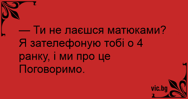 — Ти не лаєшся матюками? Я зателефоную тобі о 4 ранку, і ми про це