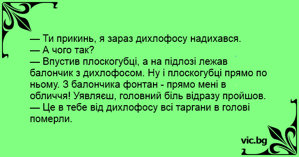 — Це в тебе від дихлофосу всі таргани в голові померли.