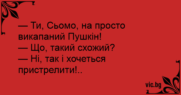 — Ти, Сьомо, на просто викапаний Пушкін!
