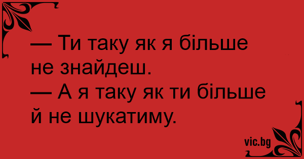 — А я таку як ти більше й не шукатиму.