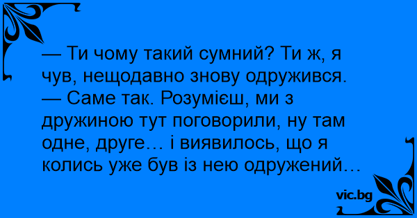 — Ти чому такий сумний? Ти ж, я чув, нещодавно знову одружився.