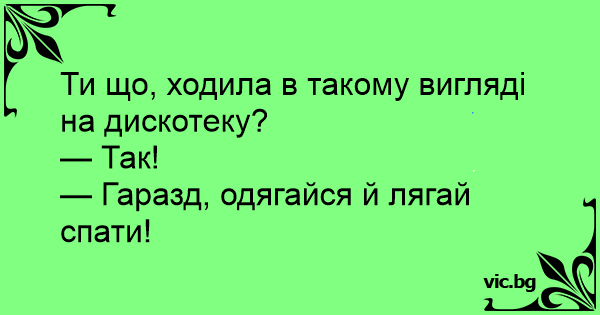 - Ти така ли ходи на дискотека!? - Да, и? - Ок, обличай се и си лягай