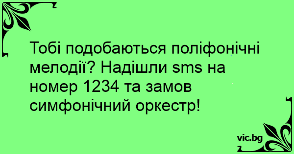 Тобі подобаються поліфонічні мелодії? Надішли sms на номер 1234 та замов симфонічний оркестр!