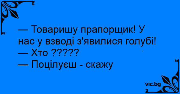 — Товаришу прапорщик! У нас у взводі з'явилися голубі!