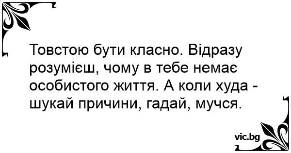 Товстою бути класно. Відразу розумієш, чому в тебе немає особистого життя. А коли худа - шукай причини, гадай, мучся.