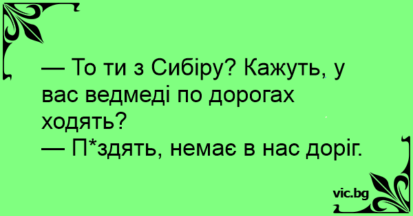 — То ти з Сибіру? Кажуть, у вас ведмеді по дорогах ходять?