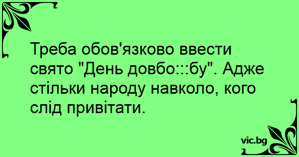 Треба обов'язково ввести свято "День довбо:::бу". Адже стільки народу навколо, кого слід привітати.