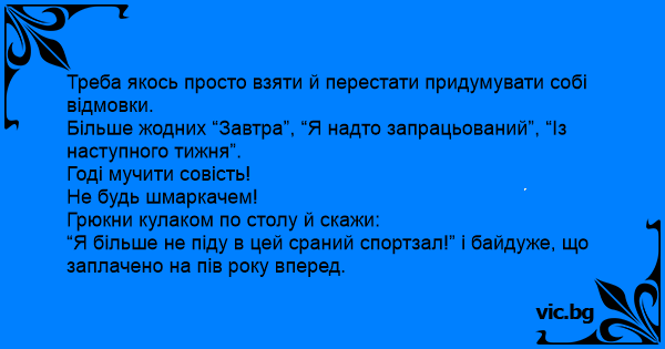 “Я більше не піду в цей сраний спортзал!” і байдуже, що заплачено на пів року вперед.