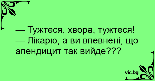 — Лікарю, а ви впевнені, що апендицит так вийде???