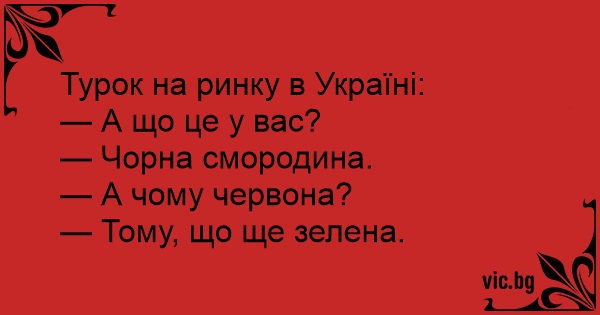 Маленька дівчинка запитує у дідуся: - Діду, а що це за ягідки? - Це чорна смородина - А чому вона червона? - Бо ще зелена