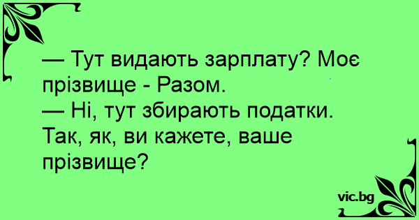 — Тут видають зарплату? Моє прізвище - Разом.
