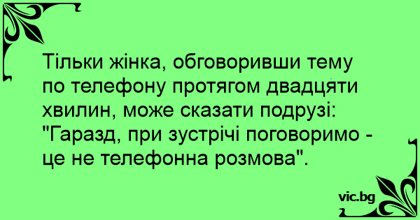 Тільки жінка, обговоривши тему по телефону протягом двадцяти хвилин, може сказати подрузі: