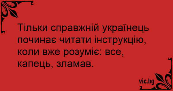 Тільки справжній українець починає читати інструкцію, коли вже розуміє: все, капець, зламав.