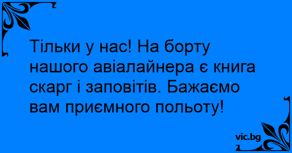 Тільки у нас! На борту нашого авіалайнера є книга скарг і заповітів. Бажаємо вам приємного польоту!