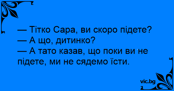— А тато казав, що поки ви не підете, ми не сядемо їсти.