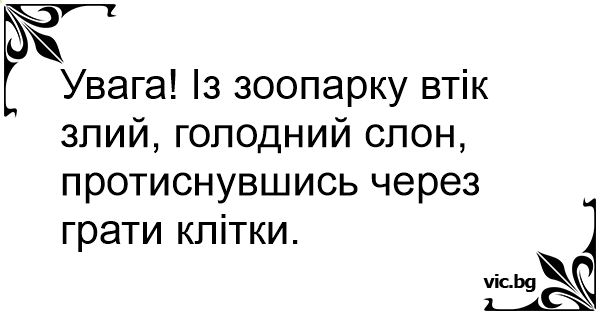 Увага! Із зоопарку втік злий, голодний слон, протиснувшись через грати клітки.