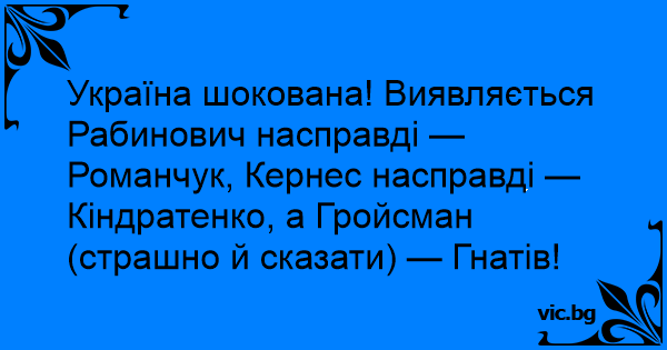 Україна шокована! Виявляється Рабинович насправді — Романчук, Кернес насправді — Кіндратенко, а Гройсман (страшно й сказати) — Гнатів!