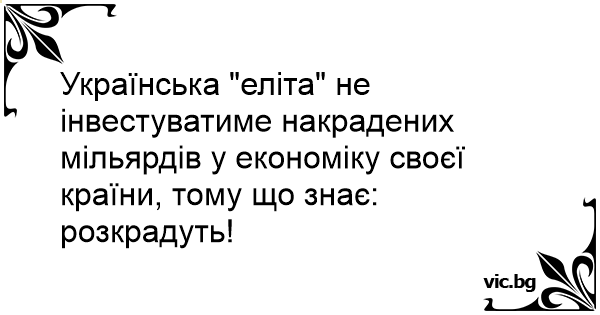 Українська "еліта" не інвестуватиме накрадених мільярдів у економіку своєї країни, тому що знає: розкрадуть!