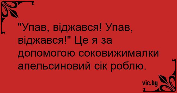 "Упав, віджався! Упав, віджався!" Це я за допомогою соковижималки апельсиновий сік роблю.