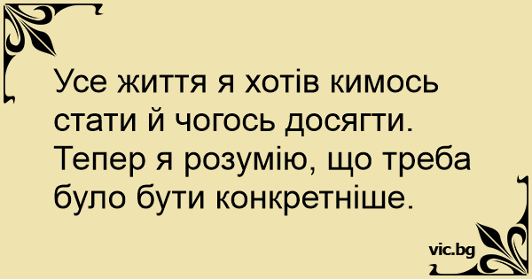 Усе життя я хотів кимось стати й чогось досягти. Тепер я розумію, що треба було бути конкретніше.