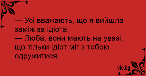 — Люба, вони мають на увазі, що тільки ідіот міг з тобою одружитися.