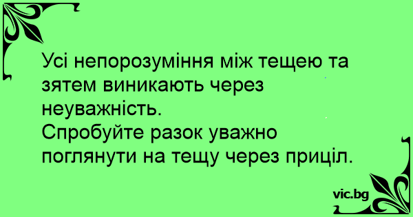 Спробуйте разок уважно поглянути на тещу через приціл.