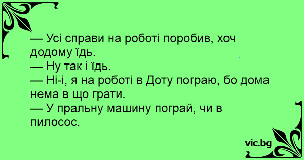 — Ні-і, я на роботі в Доту пограю, бо дома нема в що грати.