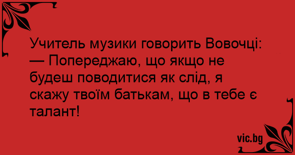 — Попереджаю, що якщо не будеш поводитися як слід, я скажу твоїм батькам, що в тебе є талант!