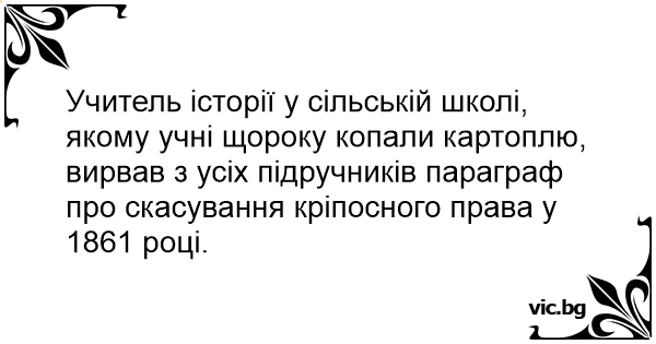 Учитель історії у сільській школі, якому учні щороку копали картоплю, вирвав з усіх підручників параграф про скасування кріпосного права у 1861 році.