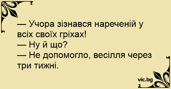 - Учора зізнався нареченій...